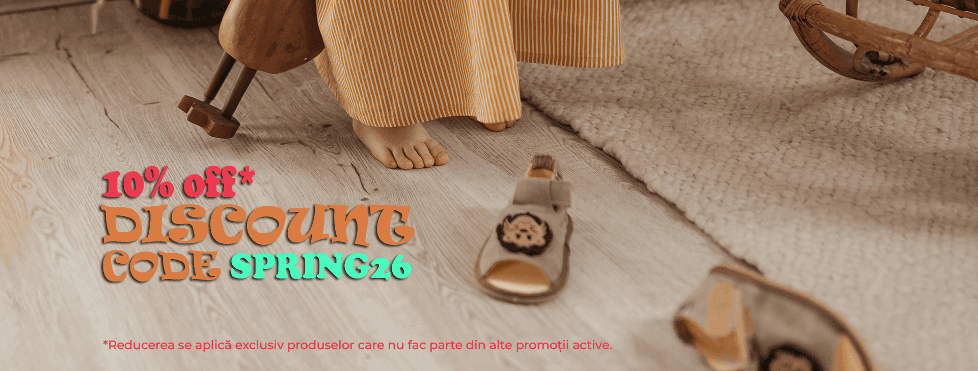 Pantofii „mers desculț” sunt ideali pentru copiii care fac primii pași. Purtând pantofi cu talpă plată și flexibilă, picioarele copiilor au șansa de a se dezvolta așa cum a intenționat natura.